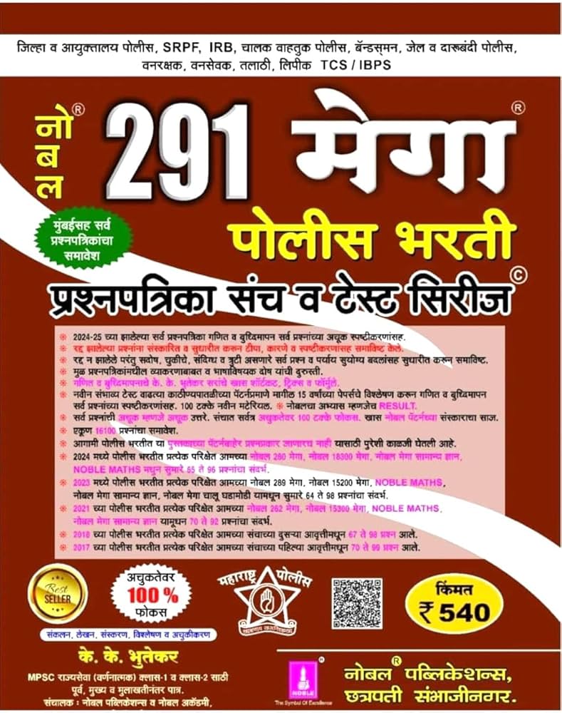 291 मेगा पोलीस भरती प्रश्नपत्रिका संच व टेस्ट सिरीज – नोबेल प्रकाशन | 291 Mega Police Bharti Prashnpatrika Sanch V Test Series – Noble Publication