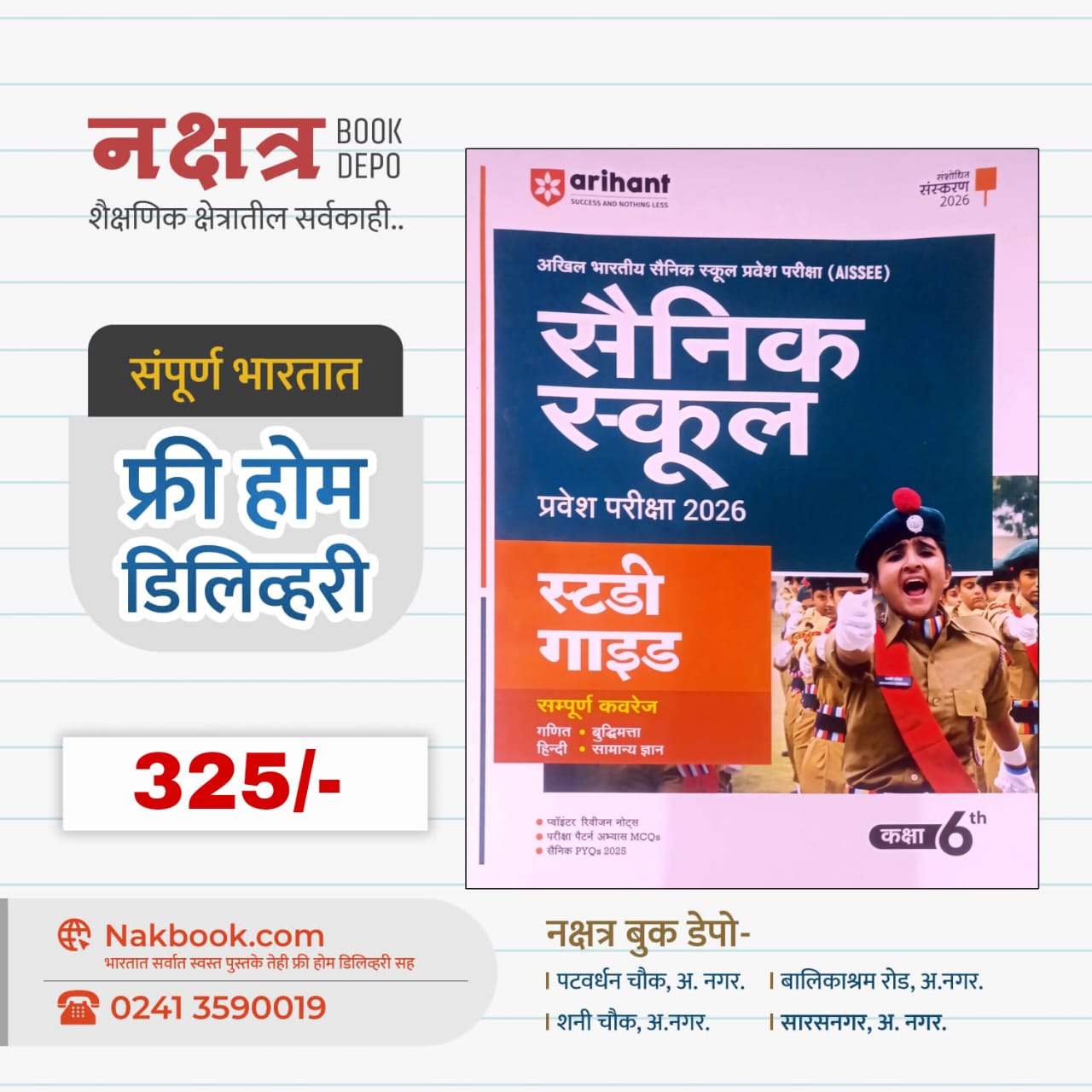 सैनिक स्कूल प्रवेश परीक्षा 2026 (स्टडी गाइड) – अरिहंत पब्लिकेशन | Sainik School Pravesh Pariksha 2026 – STD 6th (Study Guide) – Arihant Publication